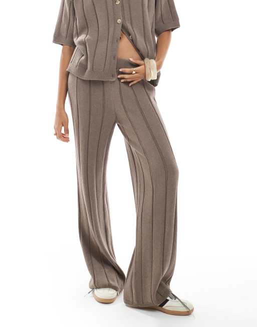 ASOS DESIGN knitted cotton pants in mocha (part of a set)