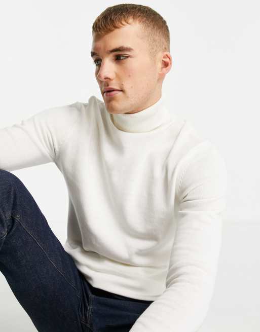 ASOS DESIGN knitted cotton roll neck jumper in white