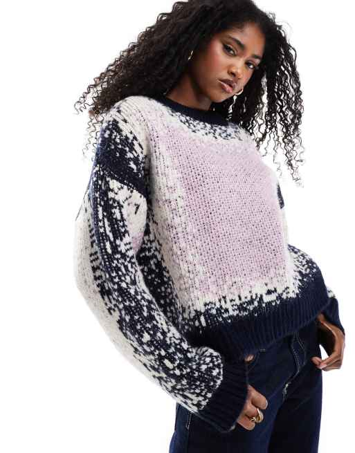 ASOS DESIGN knitted crew neck jumper with ombre pattern in multi yarn