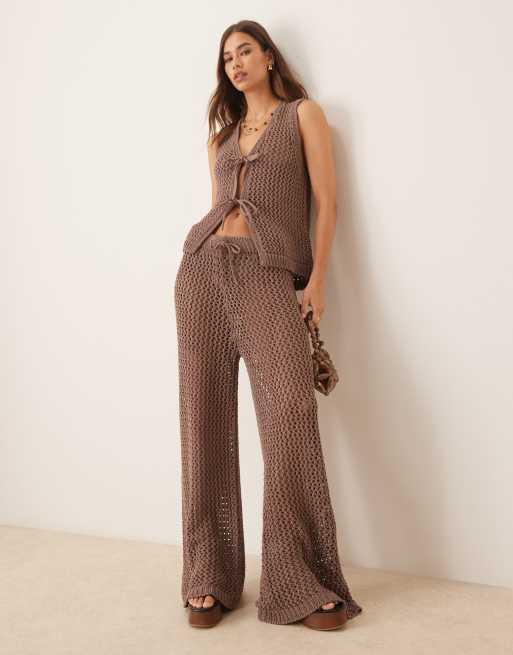 ASOS DESIGN knitted crochet pants in mocha (Part of a set)