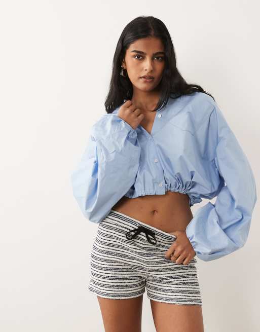 ASOS DESIGN knitted jersey shorts in blue and cream stripe