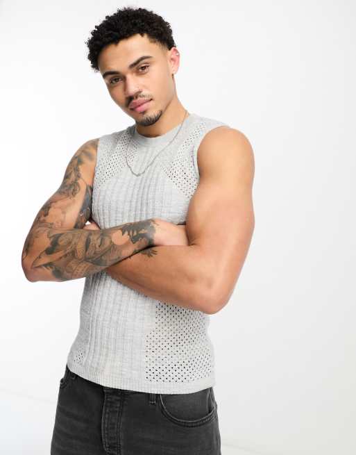 ASOS DESIGN knitted muscle fit mesh singlet in silver