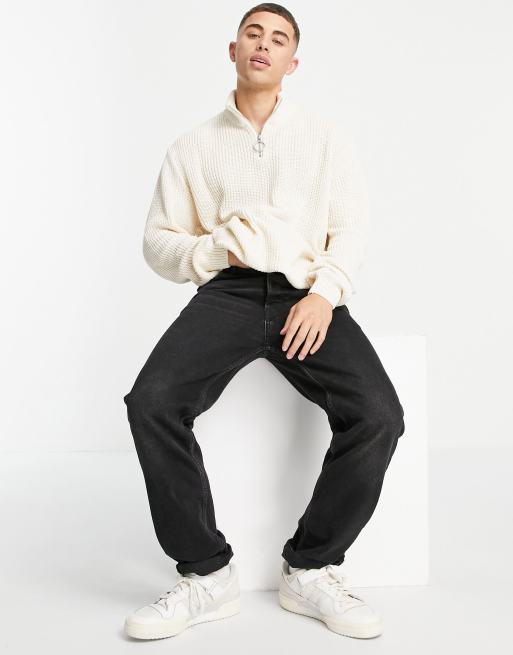ASOS DESIGN knitted oversized fisherman rib half- zip jumper in ecru