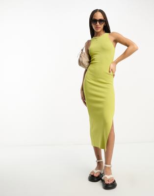 ASOS DESIGN knitted racer midi dress in green