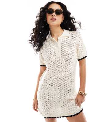 ASOS DESIGN knitted short sleeve stitch mini dress with tipped hem