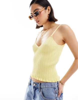 ASOS DESIGN knitted strappy v neck cami top in lemon