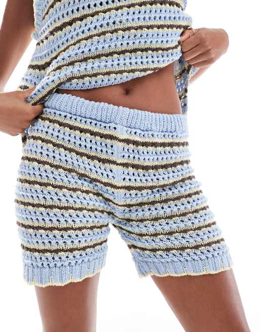 ASOS DESIGN knitted stripe shorts in lemon (part of a set)