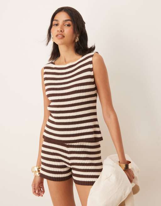 ASOS DESIGN knitted tank top in brown stripe (Part of a set)