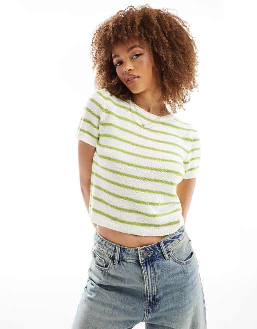 ASOS DESIGN knitted wide rib baby tee in green stripe