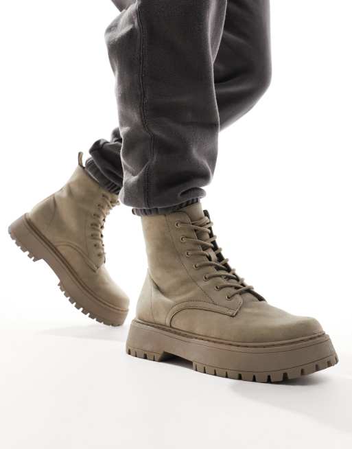 ASOS DESIGN lace up boots in brown faux suede with raised chunky sole