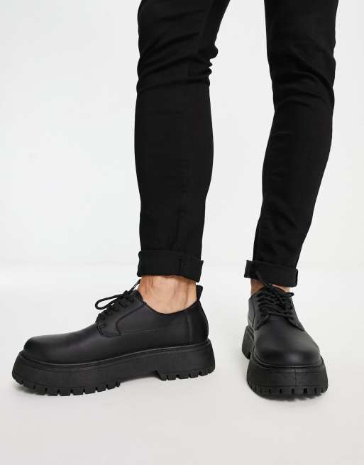 ASOS DESIGN lace up shoes in black faux leather on raised chunky sole