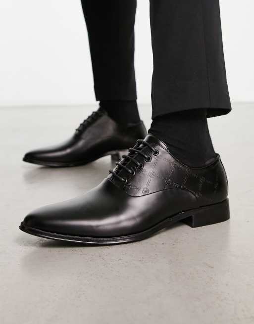 ASOS DESIGN lace up shoes with emboss design in black faux leather