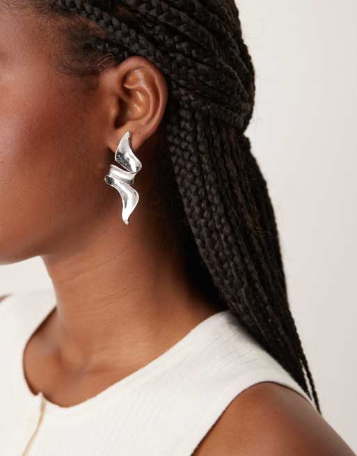 ASOS DESIGN large stud earrings with abstract sculptural shape in silver tone