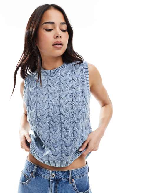 ASOS DESIGN laundered cable knit singlet top in blue