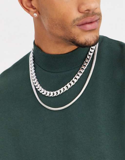 ASOS DESIGN layered chain necklace in silver tone