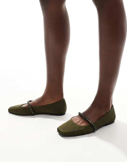 ASOS DESIGN Layla embellished mary jane ballet flats in olive