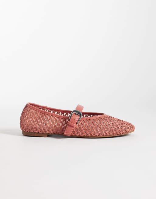 ASOS DESIGN Leah weave Mary Jane ballets in blush