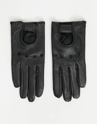 ASOS DESIGN leather plain cut out gloves with touch screen in black