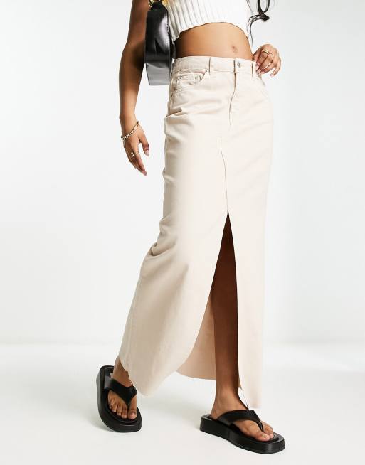 ASOS DESIGN lightweight denim maxi skirt with split front in taupe