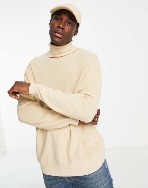 ASOS DESIGN lightweight oversized rib roll neck jumper in beige