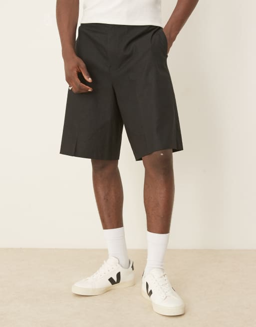 ASOS DESIGN linen blend bermuda shorts in black with elasticated waist