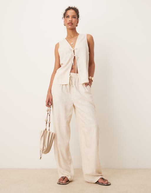 - Linen: made with linen, a breathable fabric with a slubby appearance