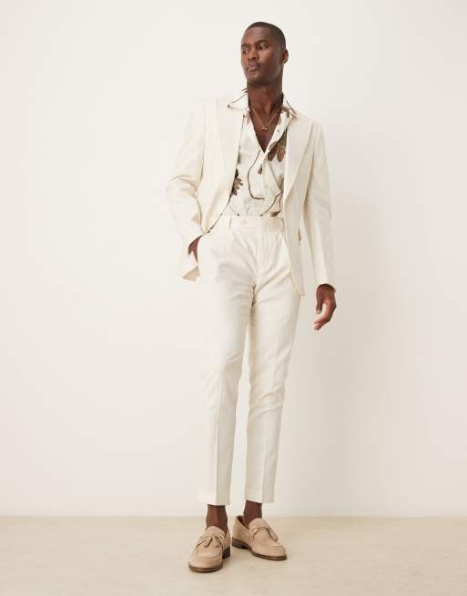 ASOS DESIGN linen-blend skinny suit chino pants in cream