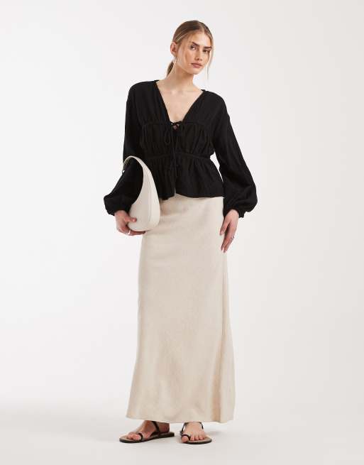 ASOS DESIGN linen mix bias midaxi skirt in stone