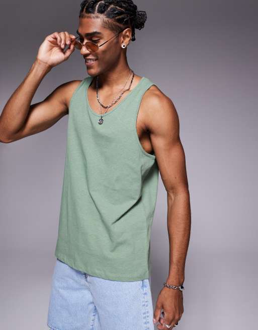 ASOS DESIGN linen-mix regular fit tank top in sage