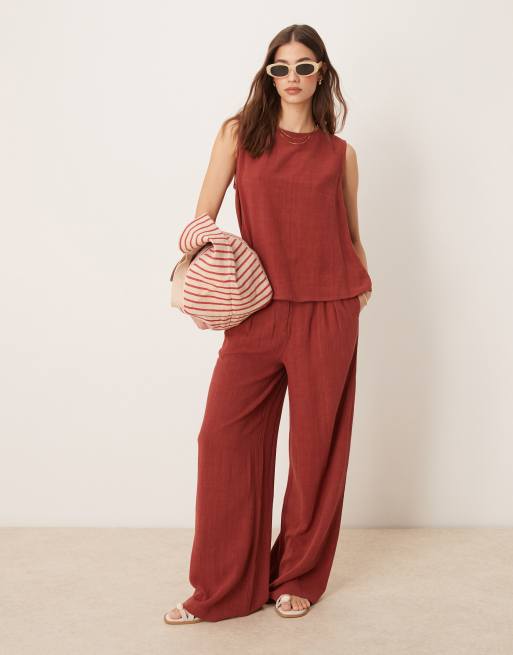 ASOS DESIGN linen shell top and wide leg pants set in brick red