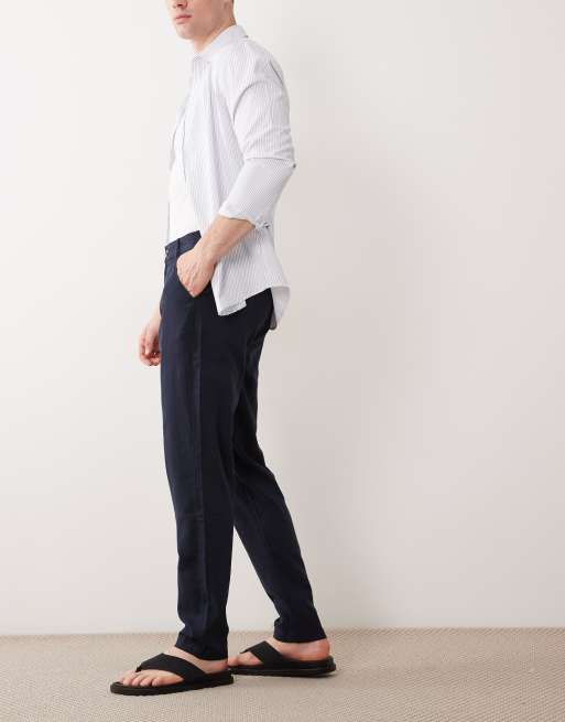 ASOS DESIGN linen shirt and pants set in navy