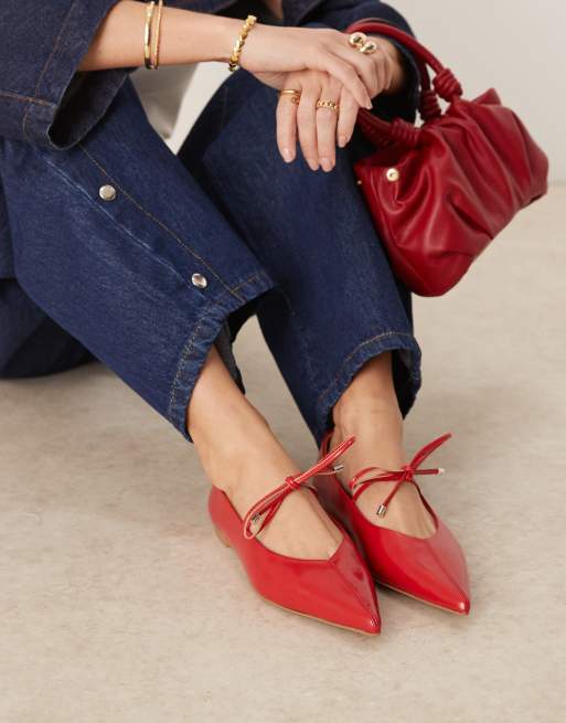 ASOS DESIGN Lithe point-toe ballets with vamp tie in red