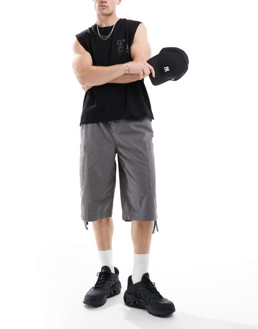 ASOS DESIGN long length parachute cargo shorts in charcoal