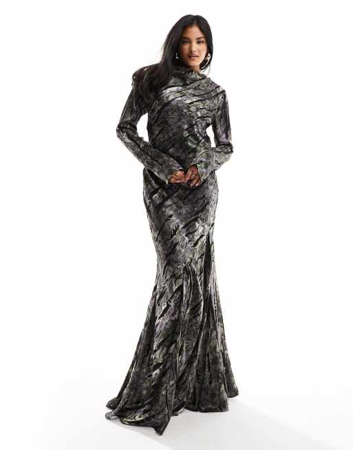 ASOS DESIGN long sleeve maxi dress in burnout animal print