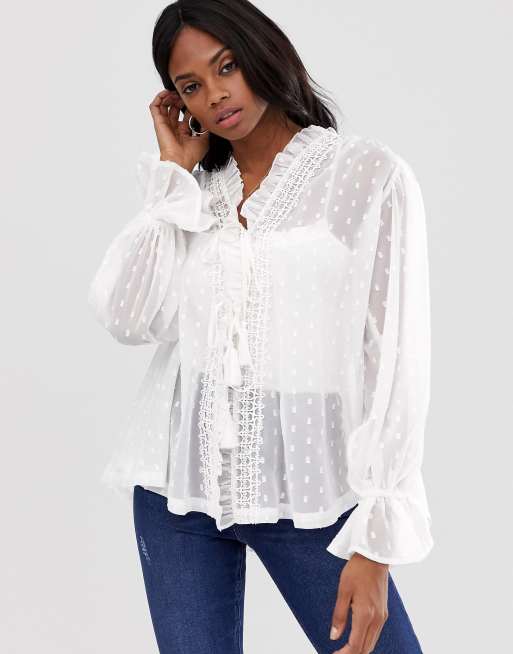 ASOS DESIGN long sleeve sheer open blouse in dobby