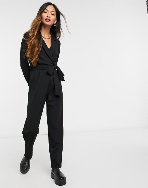 ASOS DESIGN long sleeve tux crepe jumpsuit in black