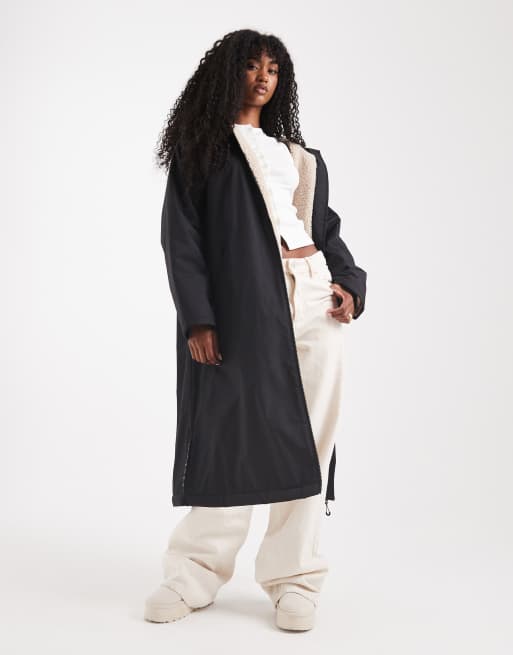 ASOS DESIGN longline fleece lined rain coat in black