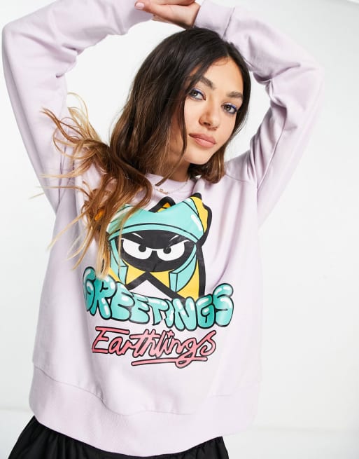 ASOS DESIGN Looney Tunes greetings earthlings sweatshirt and trackies set in lilac