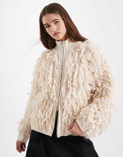 ASOS DESIGN looping high neck zip-through cardigan in marshmallow