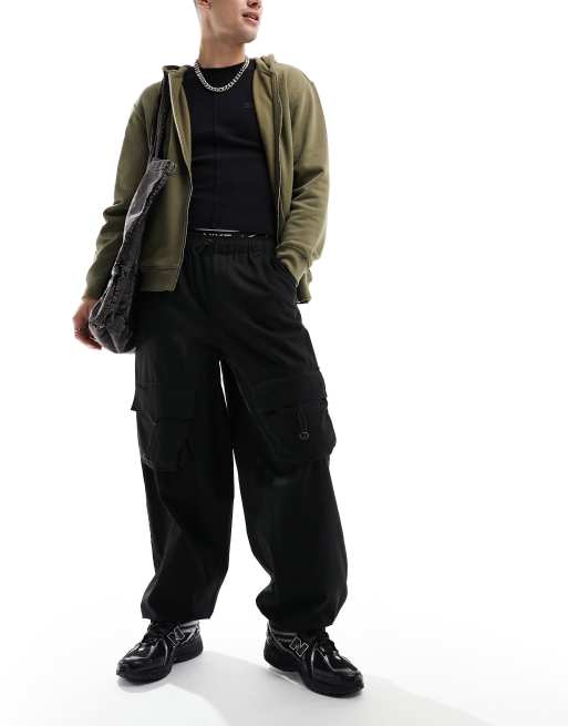 ASOS DESIGN loose fit cargo pants with front elasticated pockets in black