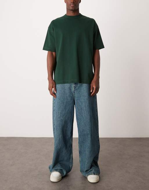ASOS DESIGN loose fit jeans with low rise and wide hem in heavy marble blue wash