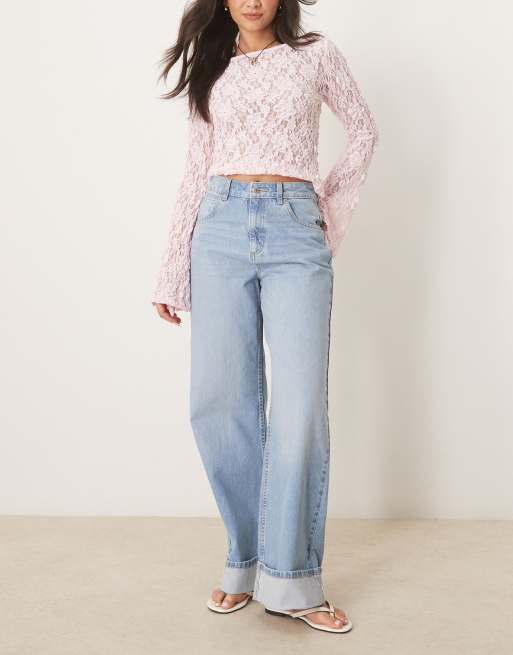 ASOS DESIGN loose jeans with deep turn up cuff in pale wash