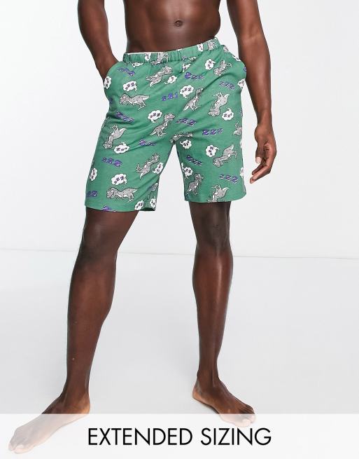 ASOS DESIGN lounge shorts in green with dinosaur print