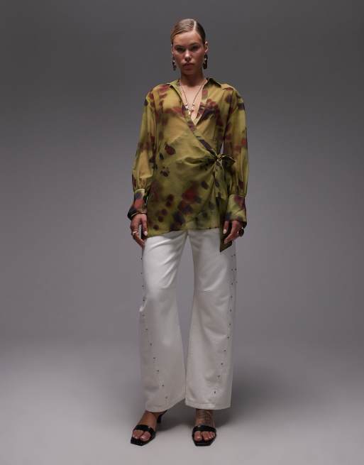 ASOS DESIGN low rise barrel leg studded jeans in ecru