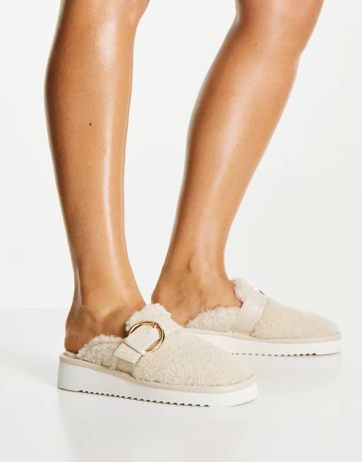 ASOS DESIGN Manzo borg flat mules in oatmeal