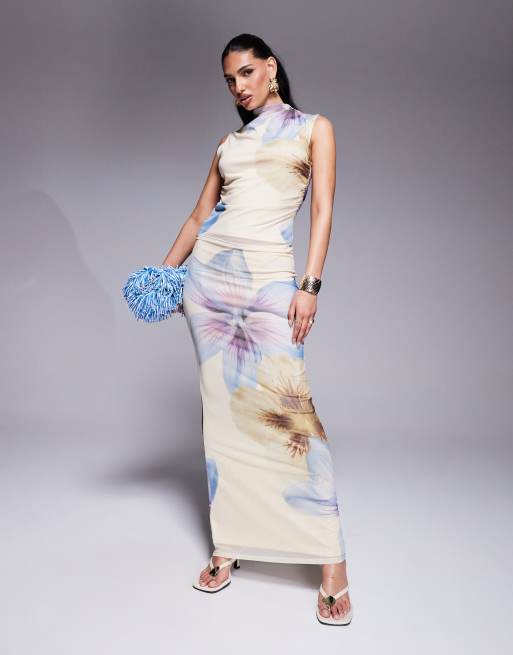 ASOS DESIGN maxi floral printed mesh low rise skirt in buttermilk (part of a set)
