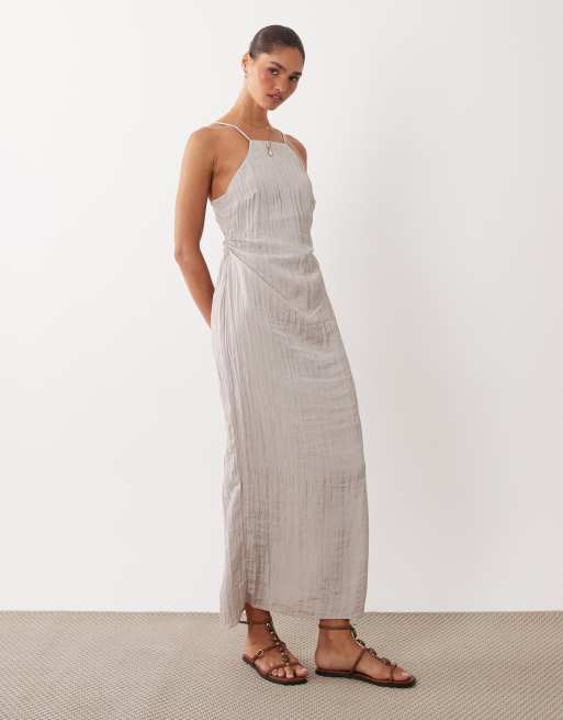 ASOS DESIGN maxi halter dress in techy crinkle fabric