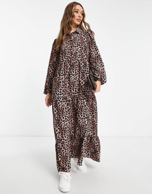 ASOS DESIGN maxi shirt dress with pin tucks in animal print