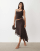 ASOS DESIGN mesh asymmetrical set with beads in brown