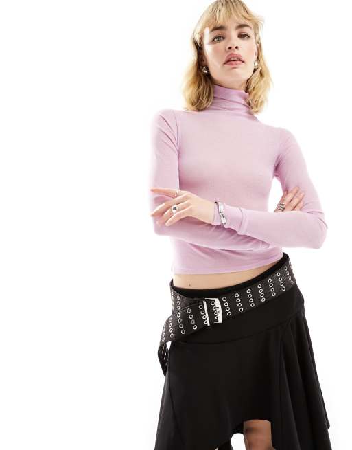 ASOS DESIGN mesh base layer high neck long sleeve top in pink